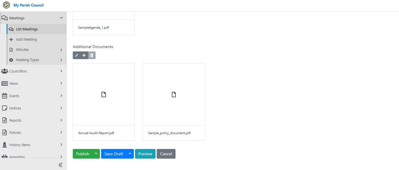 As of today we are pleased to now include an enhancement to our meeting function that makes the job of adding additional documents, other than the Agenda and Minute's, lots easier.